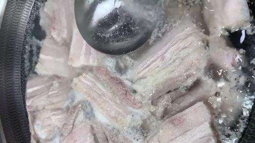 5. 炖煮五花肉:将腌制好的五花肉放入锅中,加入适量的水,大火烧开后转小火炖煮1小时。