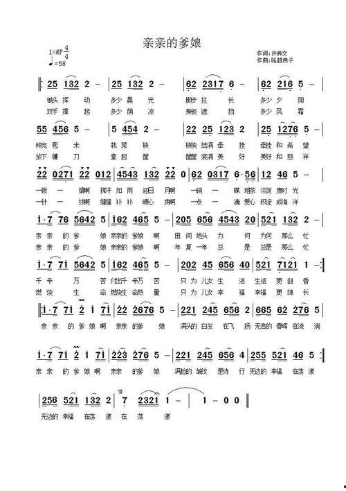 孝歌的旋律优美动听,节奏明快,富有浓郁的地方特色。它的歌词内容丰富,既有对父母的赞美,也有对孝道的宣扬,还有对生活的热爱。以下是一首典型的孝歌歌词: